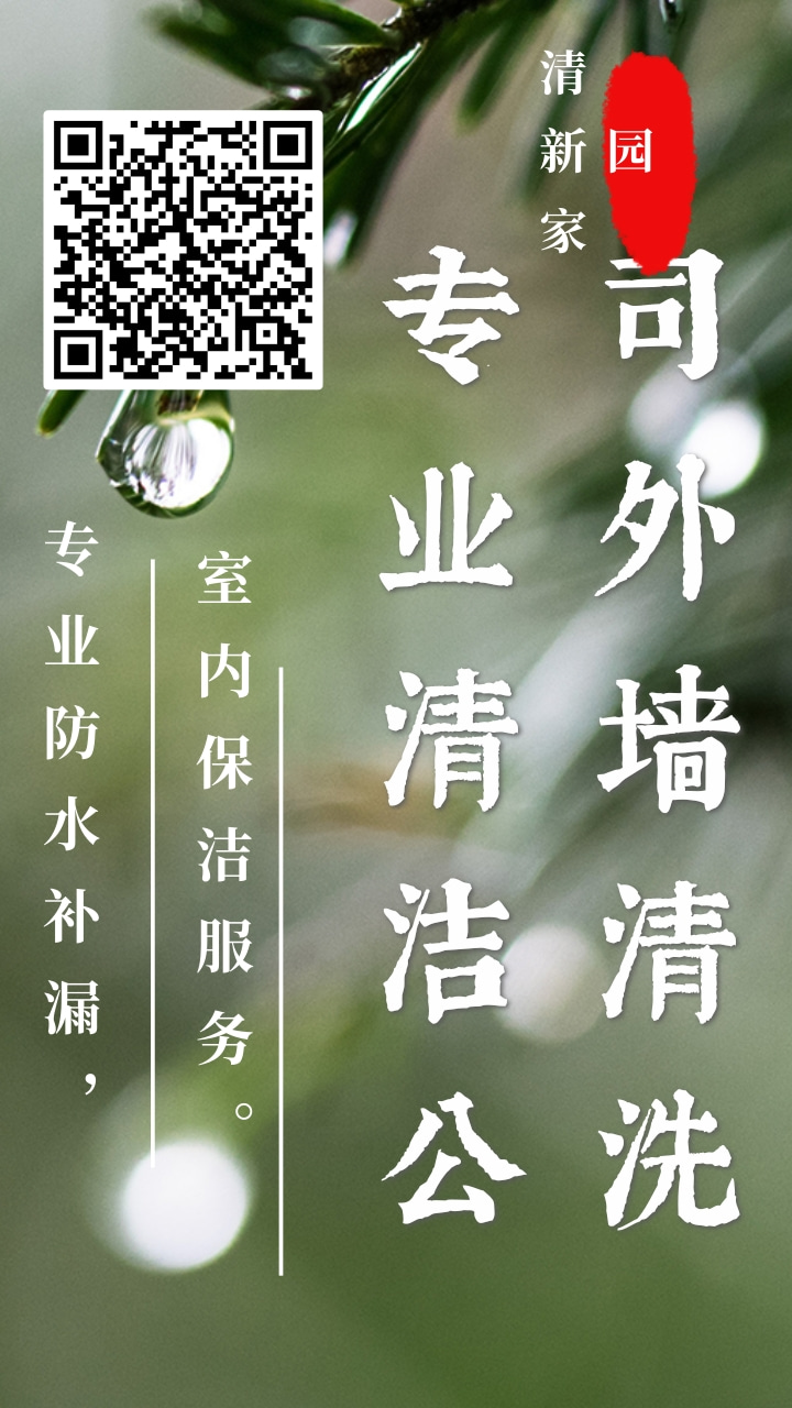 一、主要项目:专业承接日常保洁、家庭保洁、开荒保洁、物业保洁、玻璃清洗、空调清洗、地毯清洗、沙发清洗、油烟机清洗、外墙清洗、地板打蜡、石材翻新、水晶灯清洗、杀虫灭鼠、壁纸清洗、空气净化、甲醛检测与治理、空气检测、高空清洗、地暖清洗、冰箱清洗、洗衣机清洗、饮水机清洗、热水器清洗等服务。